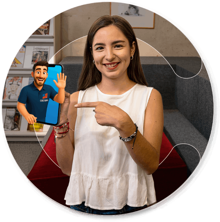 ¡Hola! Queremos presentarte a Alex, la inteligencia artificial del Cultural. Está aquí para revolucionar la forma en que aprendes inglés. Con su apoyo, tu aprendizaje será más rápido, más personalizado y mucho más entretenido. Alex es parte de la primera experiencia educativa en el Perú que incorpora inteligencia artificial a la enseñanza del idioma, para que vivas una forma de aprender única y transformadora, 100% exclusiva del Cultural.