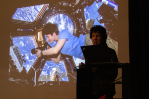 Ellen Baker cautivó al público con su testimonio de vida en el espacio, donde participó en tres misiones a bordo de los transbordadores Atlantis y Columbia. Explicó cómo la experiencia de trabajar en órbita transforma la forma de entender la vida en la Tierra y abre nuevas posibilidades de investigación en áreas como medicina, biología y física gracias a la microgravedad.