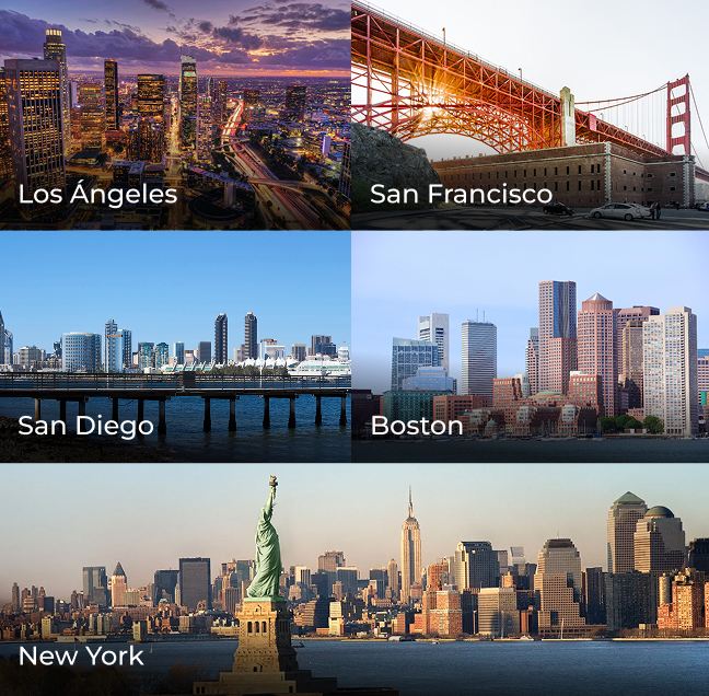 Ofrecemos programas de inmersión para mayores de 18 años, en 5 diferentes destinos en los Estados Unidos: Los Ángeles, San Francisco, San Diego, Boston y New York.