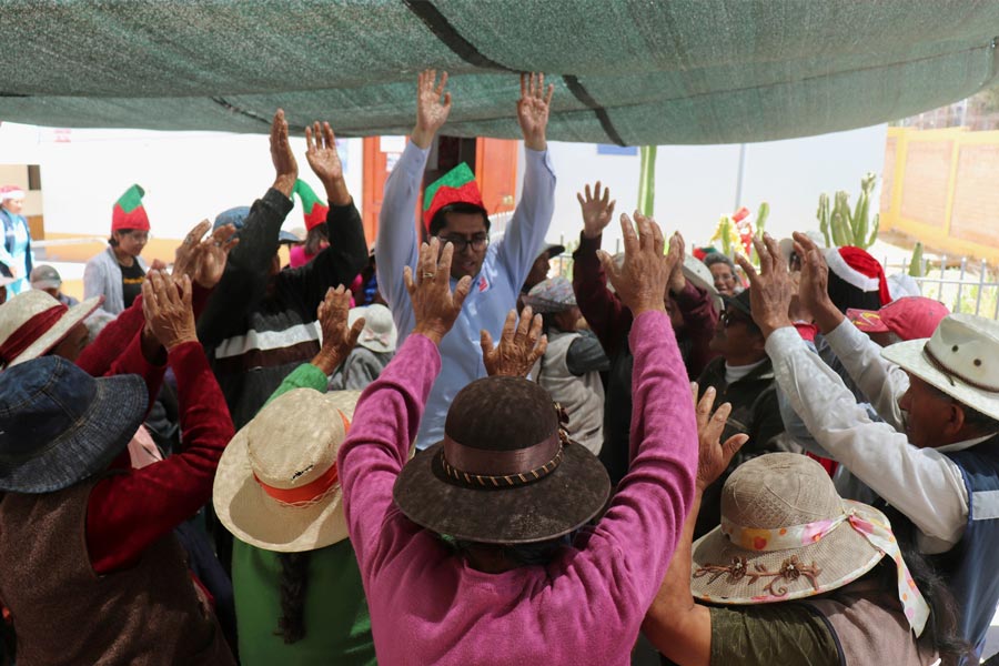 2019: La campaña de ayuda social “Navidad Solidaria” visitó el Centro de Salud de Buenos Aires de Alto Cayma, llevando canastas navideñas y un compartir a 50 abuelitos a cargo de esta Posta. De la mano de personal administrativo del Cultural y voluntarios de Agentes de Cambio realizamos dinámicas interactivas y un show navideño para alegrar estas fiestas. También, gracias a las donaciones recaudadas pudimos llevar ayuda al Departamento de Medicina de damas y varones y el Departamento de Oncología del Hospital III Goyeneche con mochilas de artículos de aseo personal y limpieza, galletas y mucha alegría para acompañar a los pacientes que tanto nos necesitan, y en especial por estas fiestas navideñas.